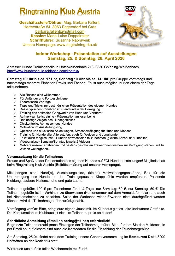 25./26. April Indoor Workshop in Feldbach