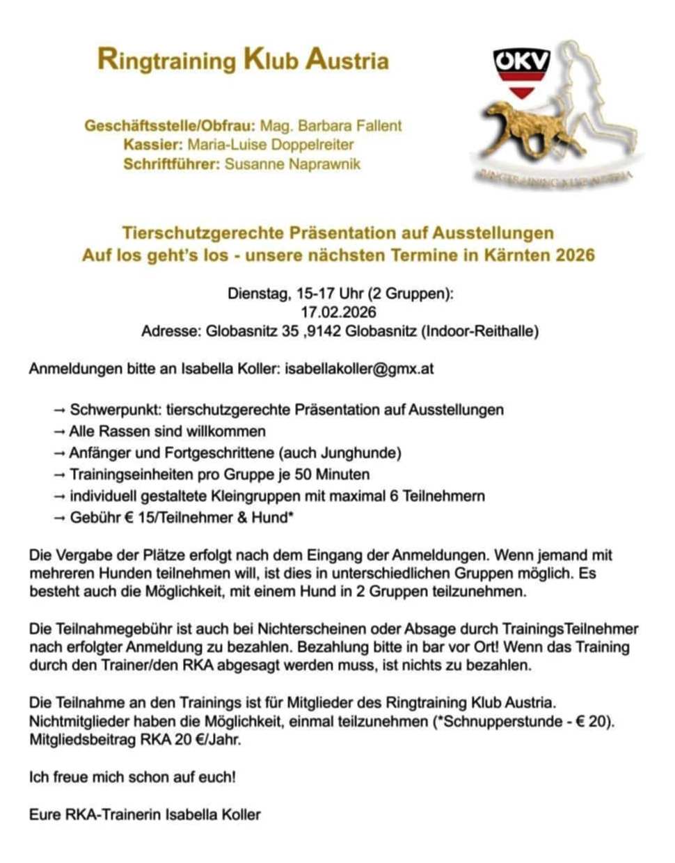 Termin Kärnten Isabella Koller 17.02. INDOOR !!!